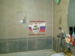 - ванна и туалет в современном кафеле до потолка,